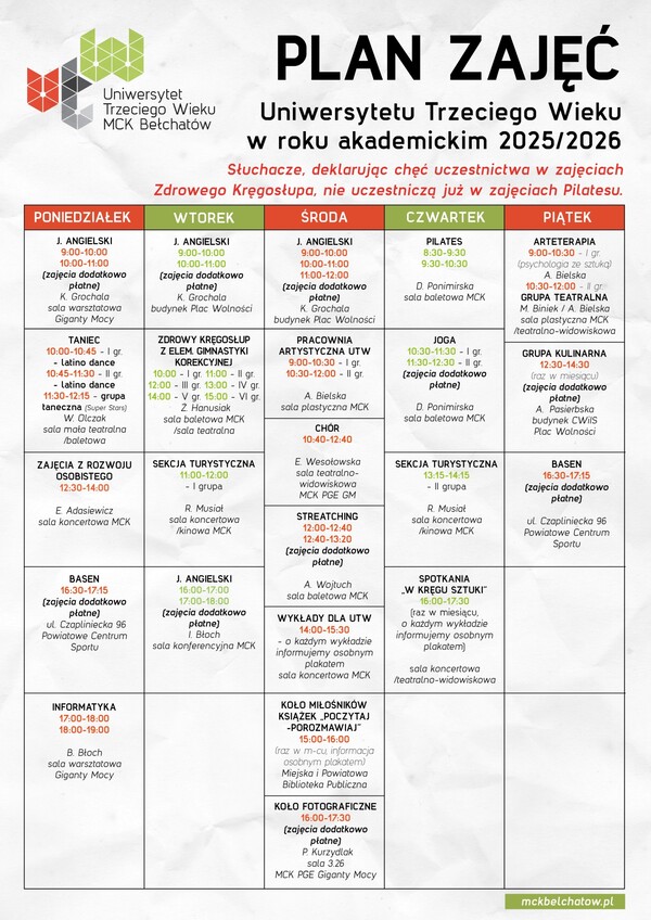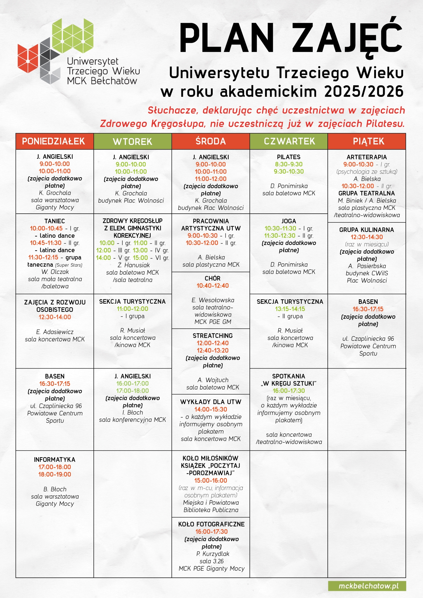 Szanowni Studenci Uniwersytetu Trzeciego Wieku w Bełchatowie,