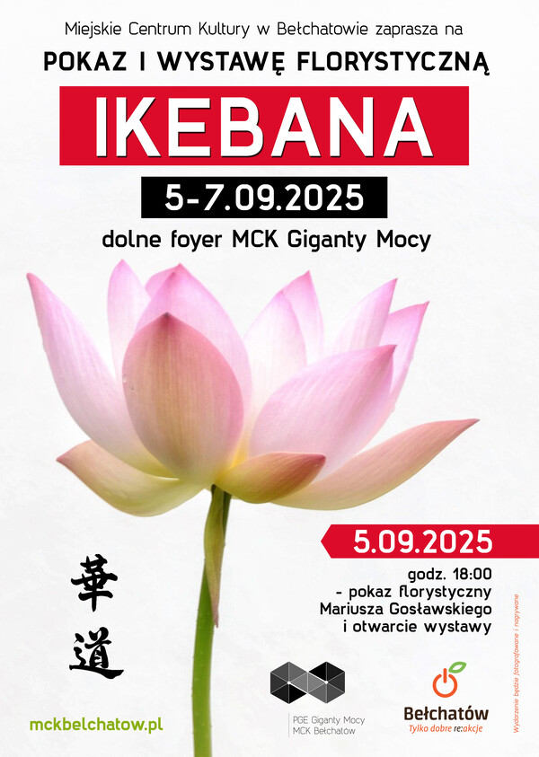 Miejskie Centrum Kultury w Bełchatowie zaprasza na pokaz i otwarcie wystawy florystycznej Mariusza Gosławskiego pt. „Ikebana”, który odbędzie się 5 września br. o godzinie 18:00 na dolnym foyer MCK Giganty Mocy.