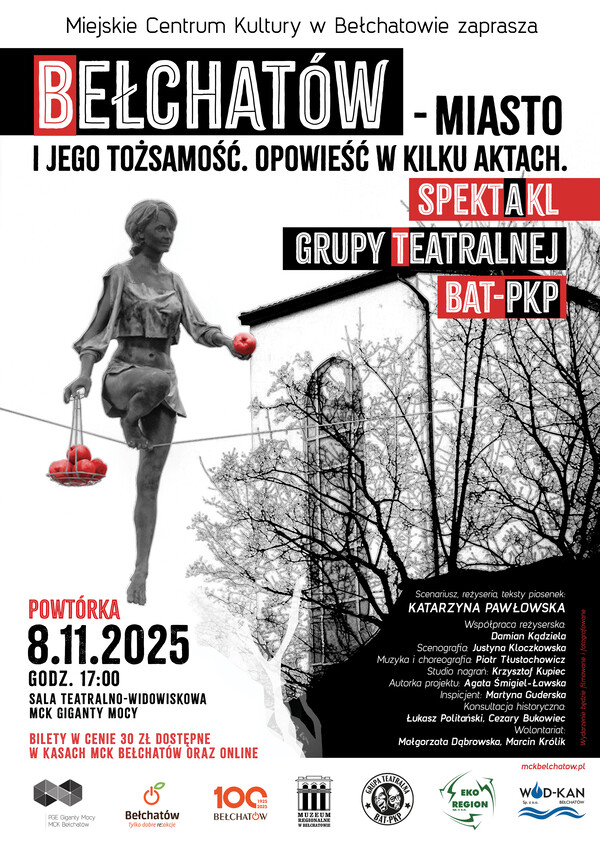 Z dumą zapraszamy na wyjątkowy spektakl w reżyserii Katarzyny Pawłowskiej, który jest jednym z najważniejszych wydarzeń w ramach obchodów 100-lecia odzyskania praw miejskich przez Bełchatów! Młodzi aktorzy z grupy BAT-PKP zabiorą nas do lat 20. XX wieku, tuż po odzyskaniu przez Polskę niepodległości, i poprowadzą przez kolejne dekady dynamicznych przemian gospodarczych, politycznych i społecznych. Opowiedzą o drodze Bełchatowa od niewielkiej osady do rozwijającego się miasta, o jego przemysłowym rozkwicie – od zakładów bawełnianych po energetyczne giganty. W finale spojrzymy na współczesność – z refleksją nad tym, kim dziś jesteśmy i jaką przyszłość wspólnie tworzymy.