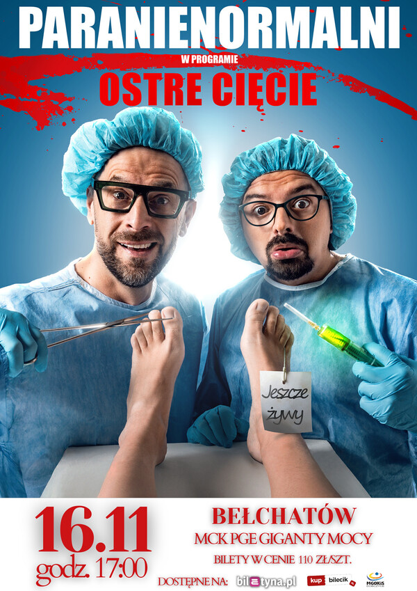 Miejskie Centrum Kultury w Bełchatowie zaprasza na Kabaret Paranienormalni - w nowym programie „Ostre Cięcie”, który odbędzie się 16 listopada 2025 r. o godzinie 17:00 w sali teatralno – widowiskowej MCK PGE Giganty Mocy.