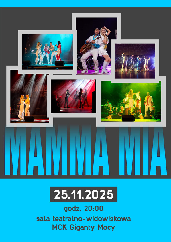 Miejskie Centrum Kultury w Bełchatowie zaprasza na spektakl muzyczny pt. „Mamma Mia”, który odbędzie się 25 listopada br. o godzinie 20:00 w sali teatralno-widowiskowej MCK Giganty Mocy.