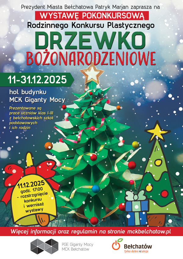 11 grudnia 2025 roku o godzinie 17:00 na dolnym holu w budynku MCK PGE Giganty Mocy nastąpi otwarcie wystawy pokonkursowej oraz wręczenie nagród laureatom konkursu plastycznego „Drzewko Bożonarodzeniowe”. Spośród 41 prac Jury postanowiło nagrodzić 4 osoby i wyróżnić 11 prac.