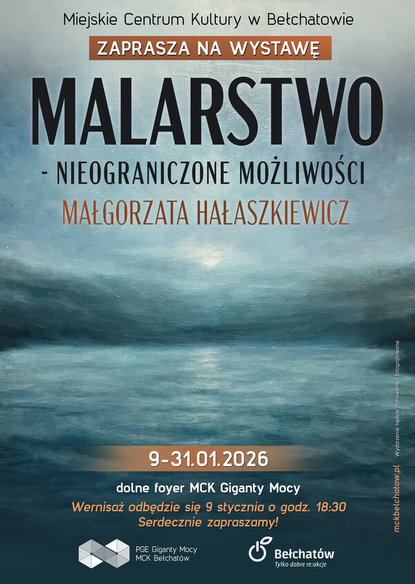 Miejskie Centrum Kultury zaprasza na wernisaż wystawy Małgorzaty Hałaszkiewicz pn. „Malarstwo - nieograniczone możliwości”, który odbędzie się 9 stycznia 2026 r. o godzinie 18:30 na dolnym foyer MCK Giganty Mocy.