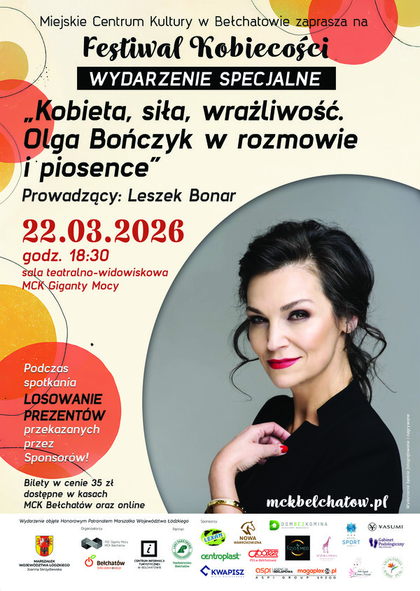 Miejskie Centrum Kultury zaprasza na spotkanie pt. „Kobieta, siła, wrażliwość. Olga Bończyk w rozmowie i piosence”, które odbędzie się 22 marca br. o godzinie 18:30 w sali teatralno-widowiskowej MCK Giganty Mocy.