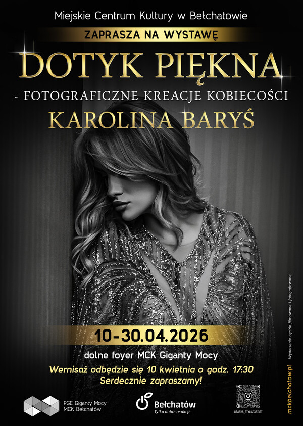 Miejskie Centrum Kultury zaprasza na wystawę fotograficzną „Dotyk piękna – fotograficzne kreacje kobiecości” autorstwa Karoliny Baryś. Wernisaż odbędzie się 10 kwietnia o godzinie 17:30 na dolnym foyer MCK Giganty Mocy.